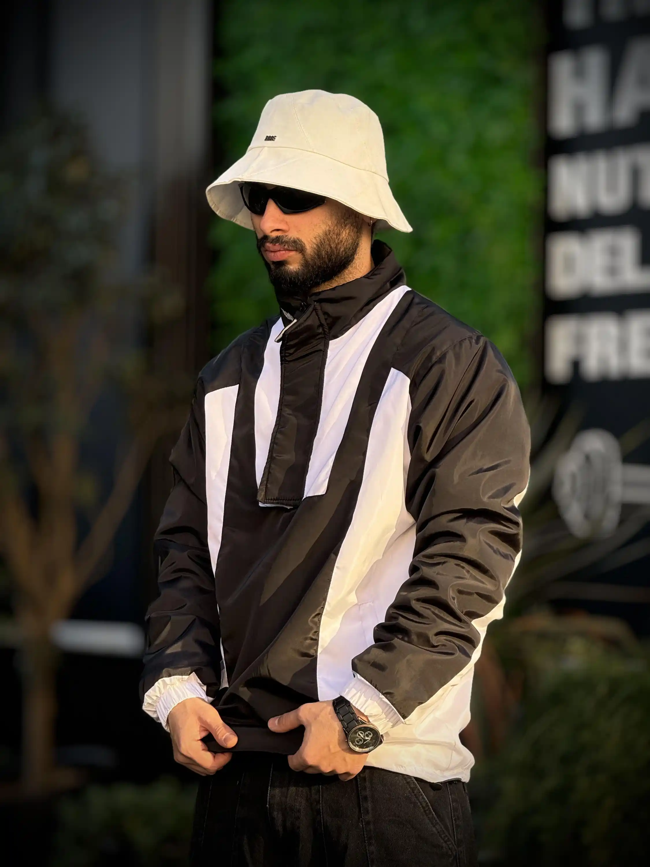 • - طراحی نیم‌زیپ جذاب و مدرن با دوخت تمیز و مقاوم
