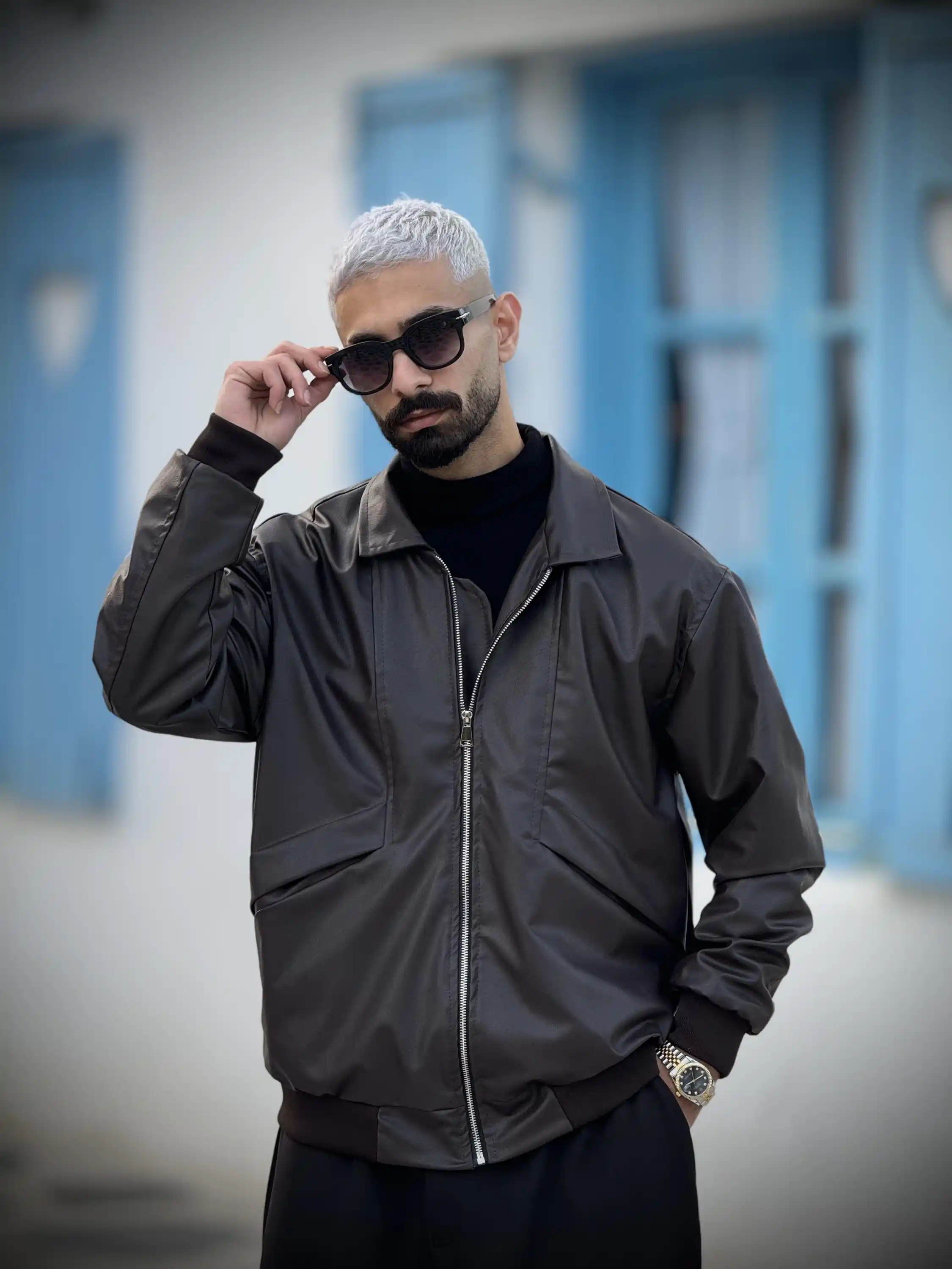 توضیحات کاپشن چرم خلبانی مردانه کد 1